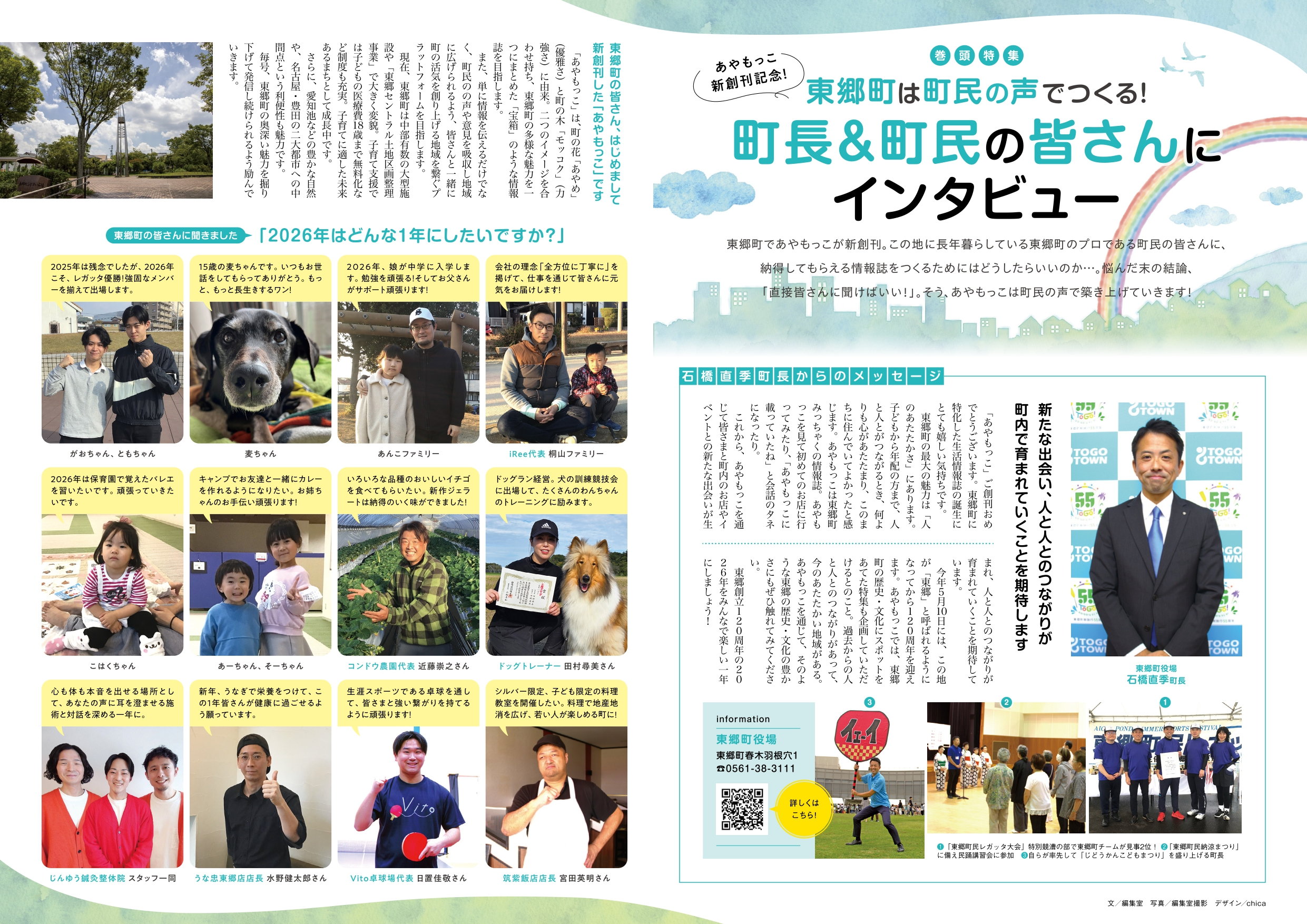当誌は最小の発行規模ながら世帯到達率85%を誇り、全世代の読者の皆さんと一緒に地域を盛り上げる「参加型プラットフォーム」として活動します。小さなエリアだからこそできる濃密な情報発信で、皆さんの暮らしに寄り添い、東郷町の魅力を毎号丁寧にお届けします。