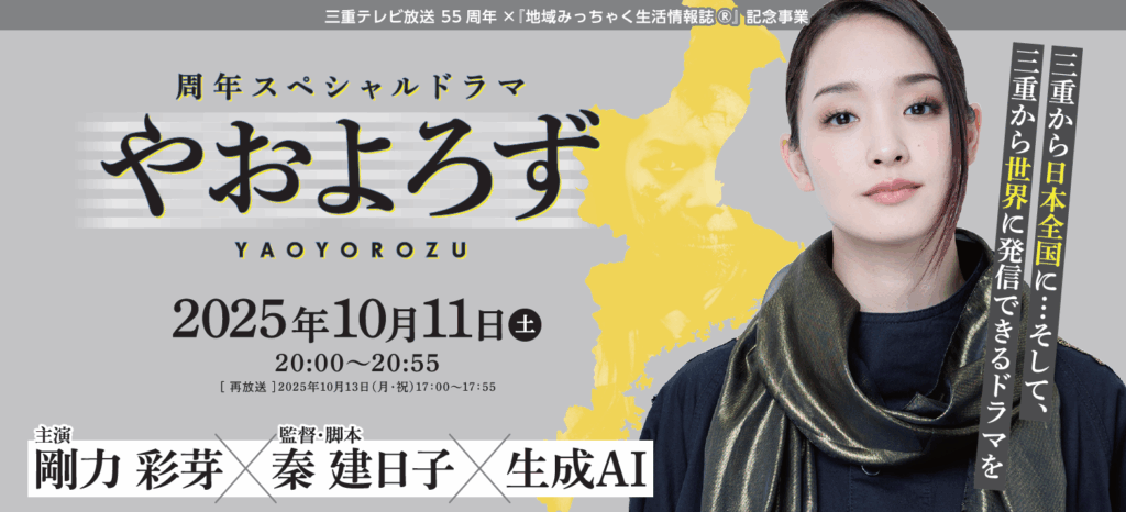 番組内では、当社と三重テレビ放送が互いの周年を記念し共同で制作を担当し、剛力さんに主演頂いた生成AIフル活用ドラマ「やおよろず」についてお話させていただきました。